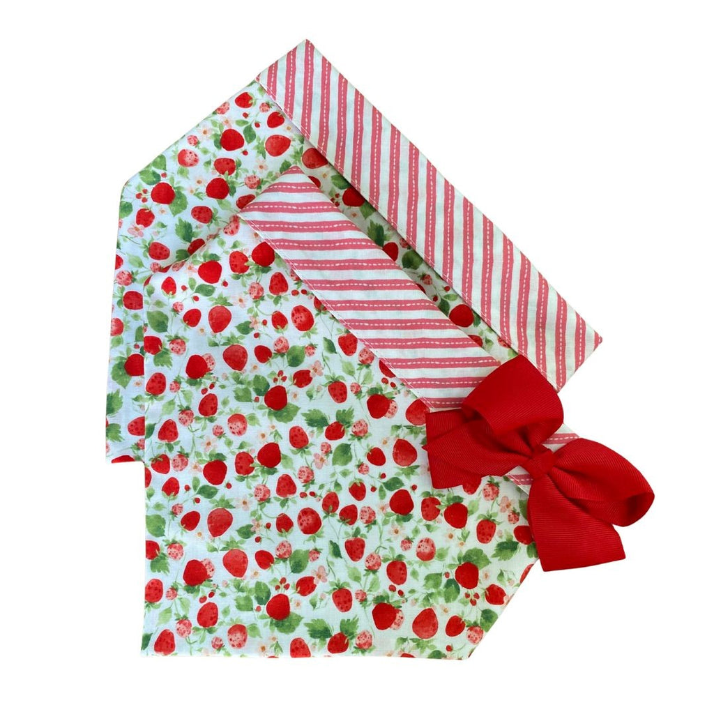 Introducing Strawberry Patch, a standout addition to our pet bandana collection at Chloe & Max LLC. This bandana features a bold design of  pink and Strawberries and green v...